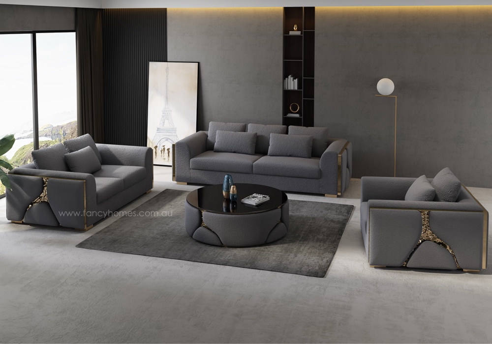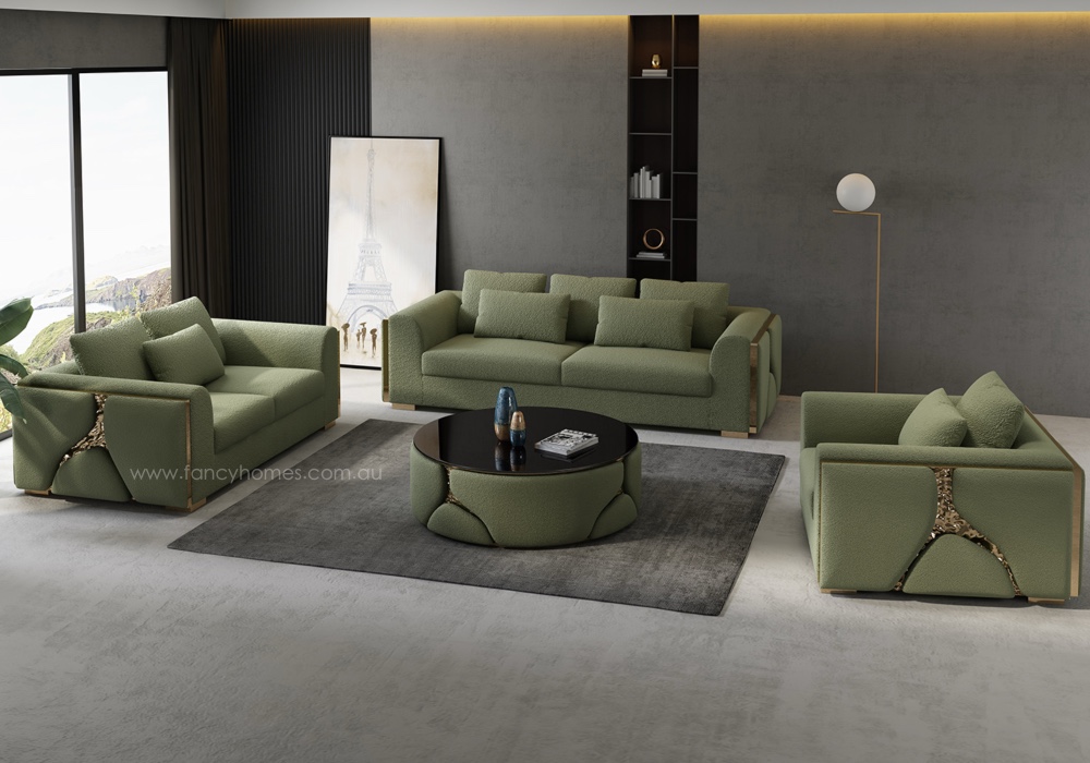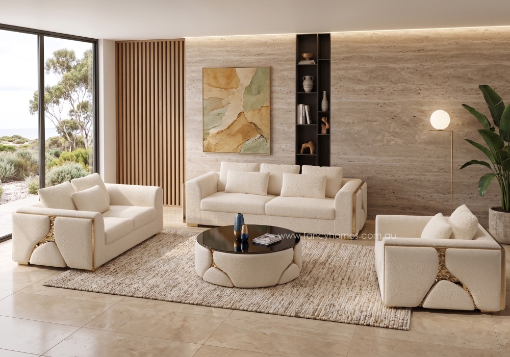 The Aurelia Fabric Lounge Suite is the epitome of contemporary luxury, designed for those who seek a statement piece that doesn’t compromise on comfort. Its most striking feature is the sculptural side profile, adorned with elegant gold-toned metal accents that catch the light and add a touch of opulence to any room. Wrapped in your choice of premium upholstery—choose between the soft, luminous glow of Chenille or the rich, cozy texture of Looped Boucle—this suite offers a bespoke tactile experience. Engineered with high-density foam for lasting support and a solid hardwood frame, the Aurelia combines avant-garde aesthetics with the durability required for modern family life.Set options