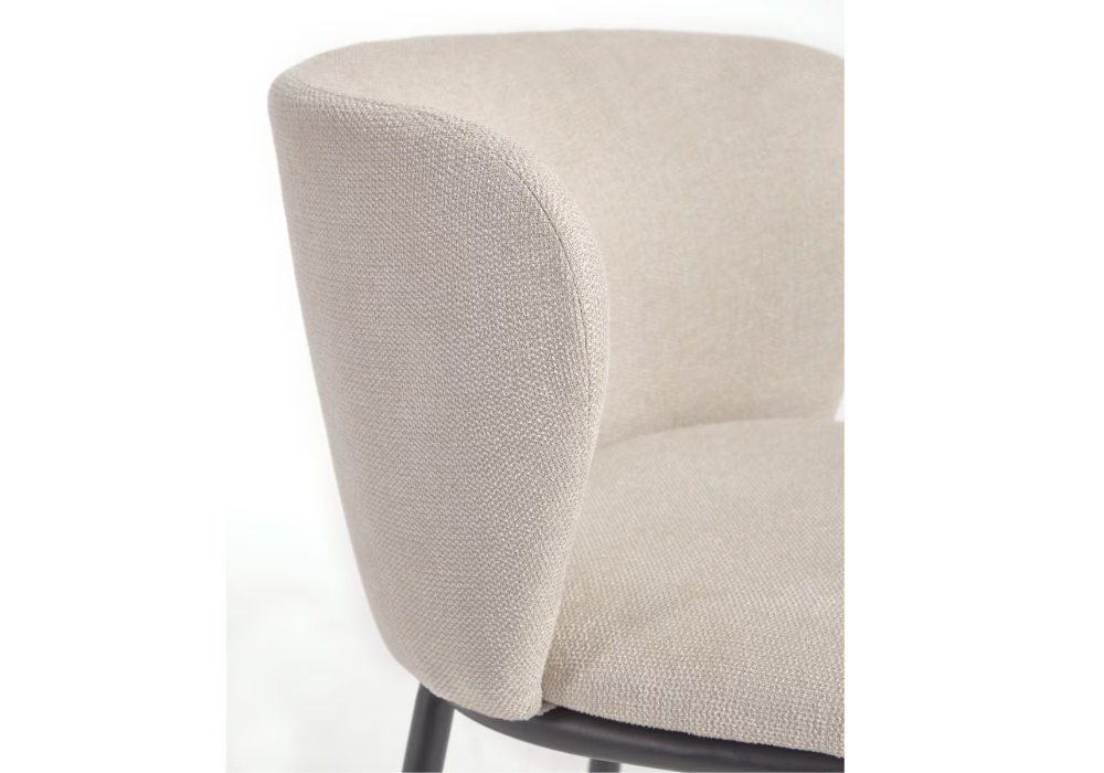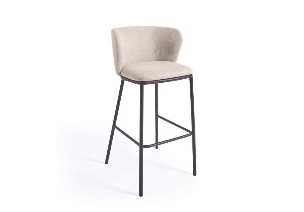 Ciselia stool in beige chenille fabric with steel legs in black finish, Seat height available in 65cm or 75cmProduct Details