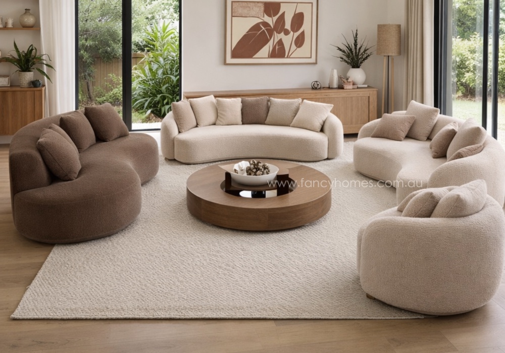 Transform your home into a haven of tranquility with the CloudNest Curved Fabric Lounge Suite. Designed to evoke the gentle comfort of a floating cloud, this suite features a stunning organic silhouette with soft, sweeping lines and no sharp edges. The modern rounded design not only provides a cocoon-like embrace but also adds a sophisticated focal point to any modern interior. Wrapped in your choice of premium upholstery—choose between the soft, luminous sheen of Chenille or the exceptionally tactile, cloud-like softness of Looped Boucle—the CloudNest offers an unparalleled sensory experience. Engineered with high-density foam for plush, enduring support and a solid hardwood frame, this suite is a perfect balance of comfort, style, and lasting durability.