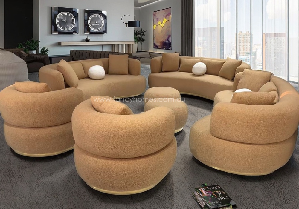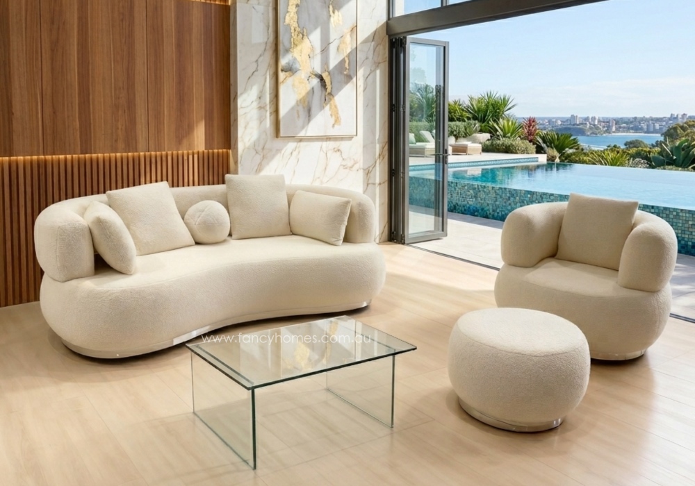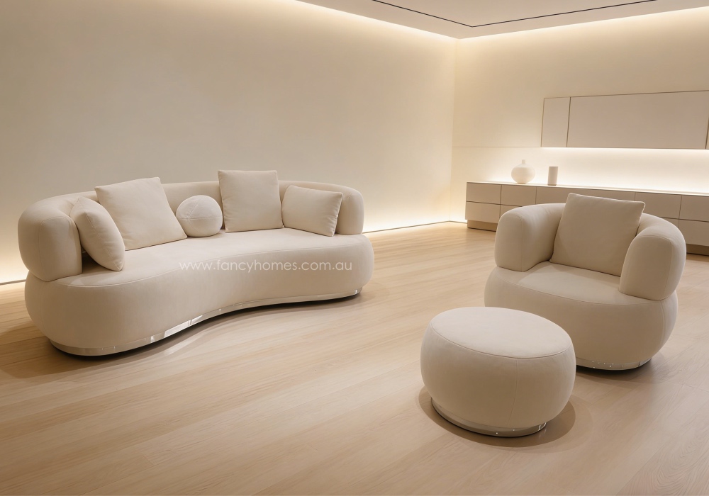 Introduce a sense of fluid elegance to your living space with the Curvella Fabric Lounge Suite. Defined by its sweeping, organic lines and a sophisticated curved silhouette, this suite acts as a stunning architectural centerpiece. A defining feature of the Curvella is its sleek, reflective metallic base trim, which grounds the soft curves with a touch of modern glamour and visually elevates the entire design. Wrapped in your choice of premium upholstery—choose between the soft, luminous glow of Chenille or the rich, tactile texture of Looped Boucle—the Curvella offers an unparalleled lounging experience. Engineered with high-density foam for plush, enduring support and a solid hardwood frame, this suite effortlessly marries avant-garde minimalism with everyday functionality.
