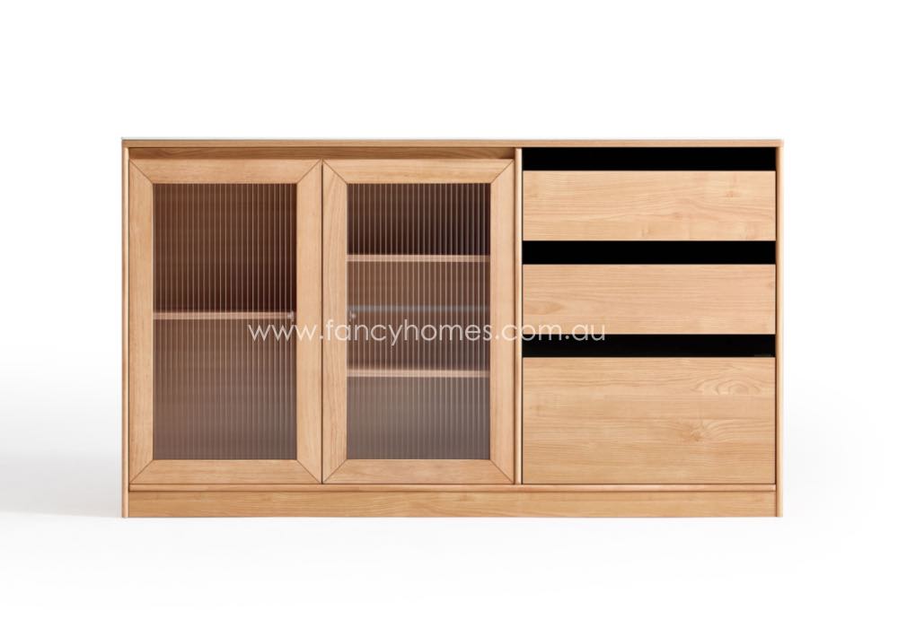 - Cabinet: Rubber wood + Melamine board + Reeded glass + Tempered glass