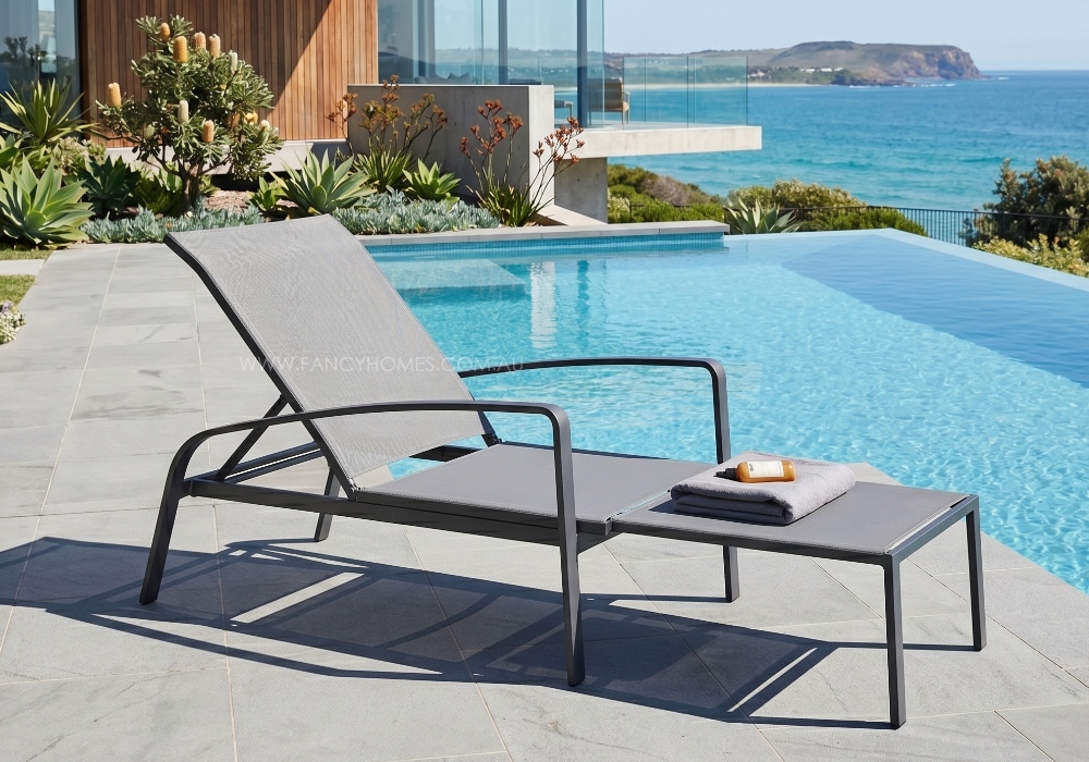 Bring resort-style luxury to your poolside, patio, or garden with the Higet Extendable Sun Lounge. Engineered for both ultimate comfort and space-saving practicality, this innovative sunbed features a hidden retractable footrest that extends up to 60cm when you want to fully stretch out, and slides back seamlessly when not in use. The sleek, modern frame is finished in a sophisticated charcoal grey powder coating that perfectly complements contemporary outdoor spaces. Designed to withstand the harsh Australian sun, the seating surface is crafted from authentic American Phifertex mesh in a versatile Khaki tone, offering superior breathability, UV resistance, and effortless maintenance.Product Details