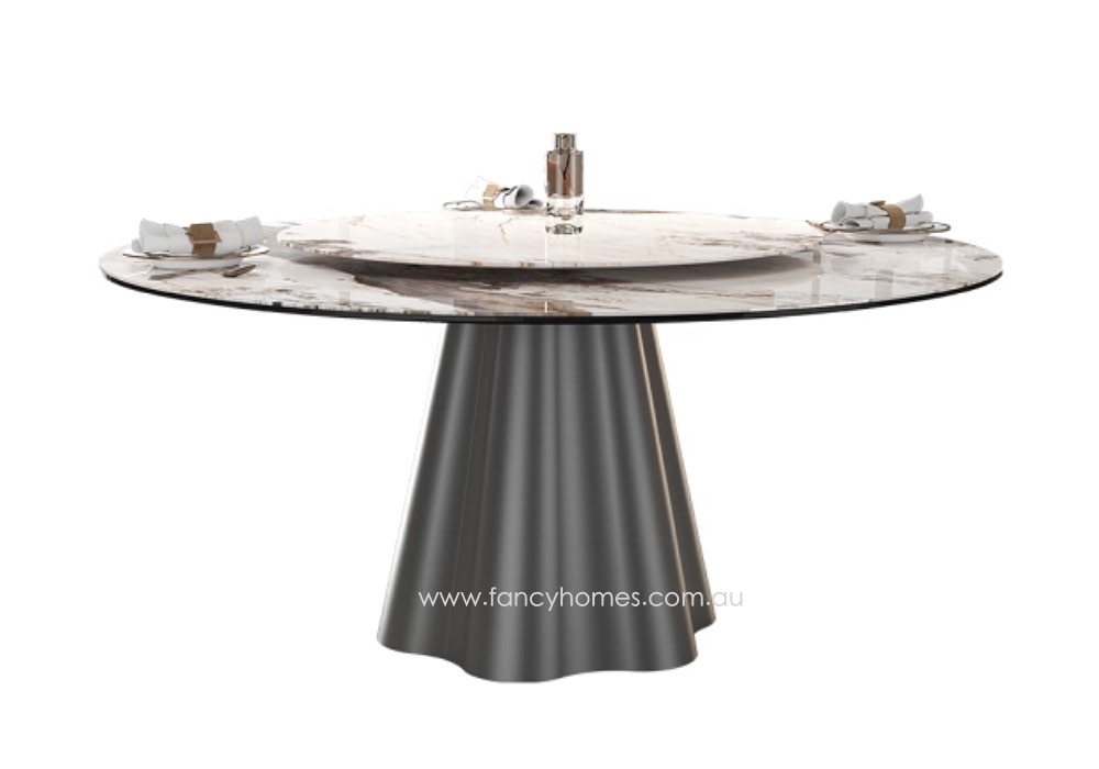 Kove sintered stone round dining table dark grey base with Lazy Susan