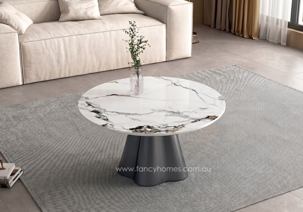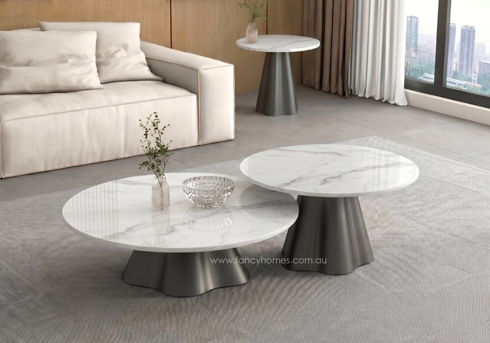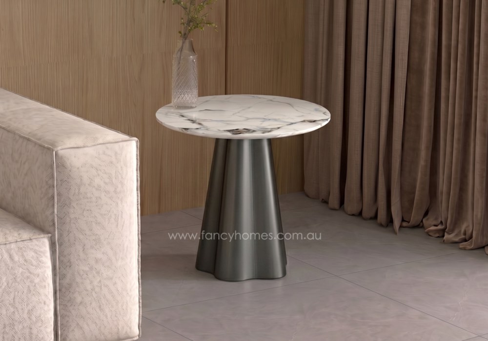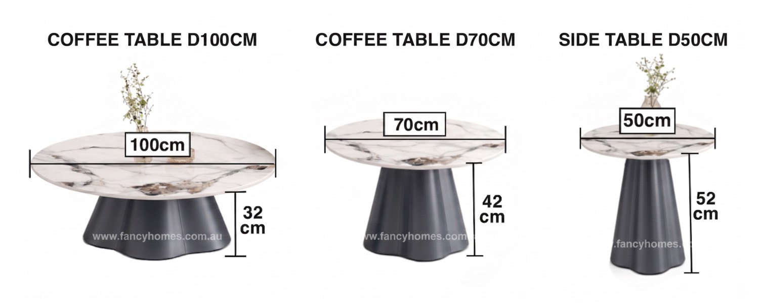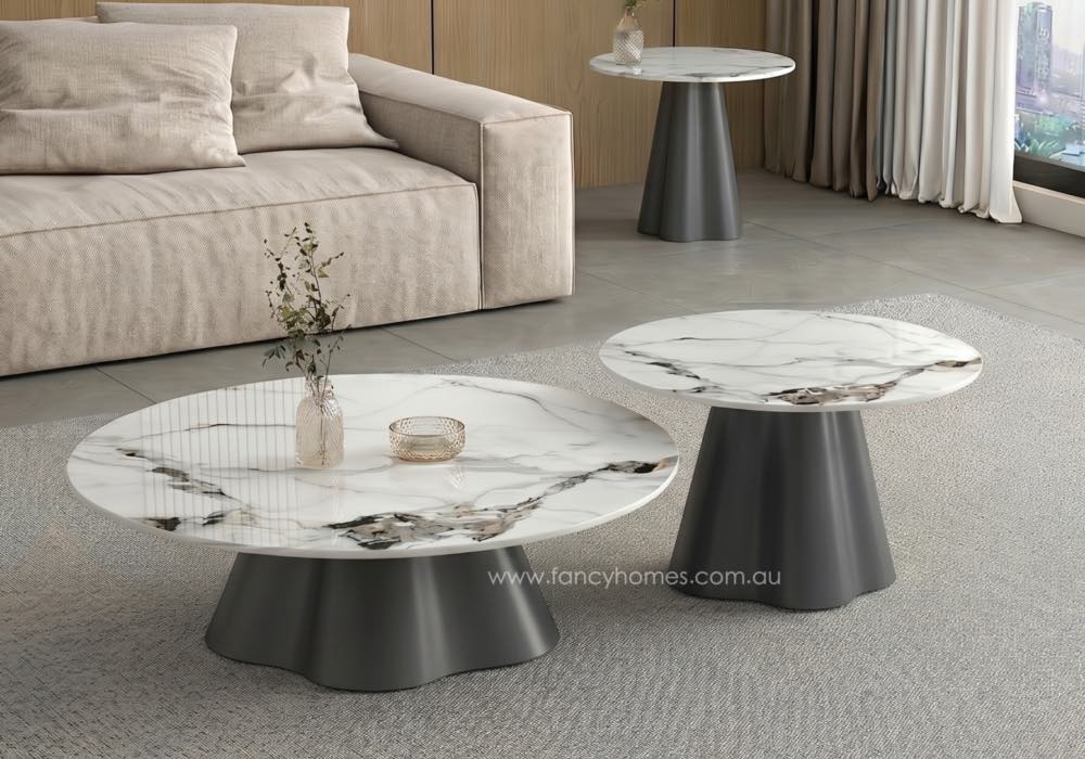 The Kove Coffee and Side Table collection brings a sculptural, modern elegance to your living space, perfectly mirroring the sophisticated design of the ➡️ Kove rectangular and ➡️ round dining series. Complete the look with ➡️ Kove console table for a cohesive, designer finish. Featuring the signature fluted, dark grey stainless steel base and premium sintered stone tops, these tables are designed to work as a nested set or as standalone accent pieces. Durable, practical, and undeniably stylish, they provide the perfect surface for daily use while maintaining a high-end, designer aesthetic in any contemporary interior.Product Details