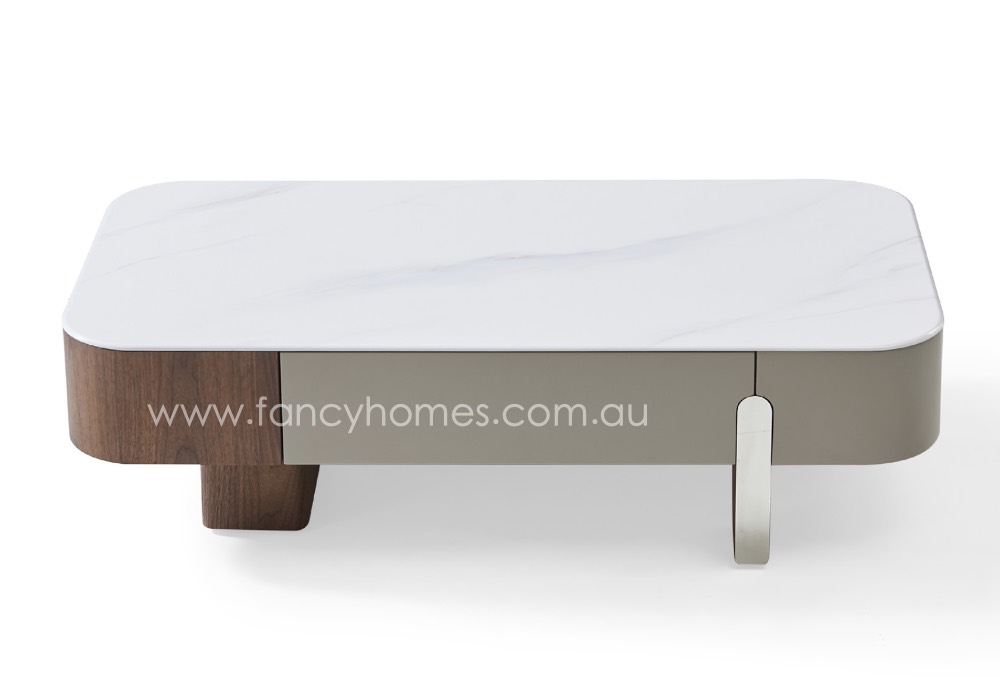 ORLINA Walnut Veneer Marble Top Coffee Table