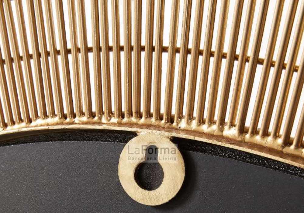 - Round mirror in metal rods shiny brass finish.